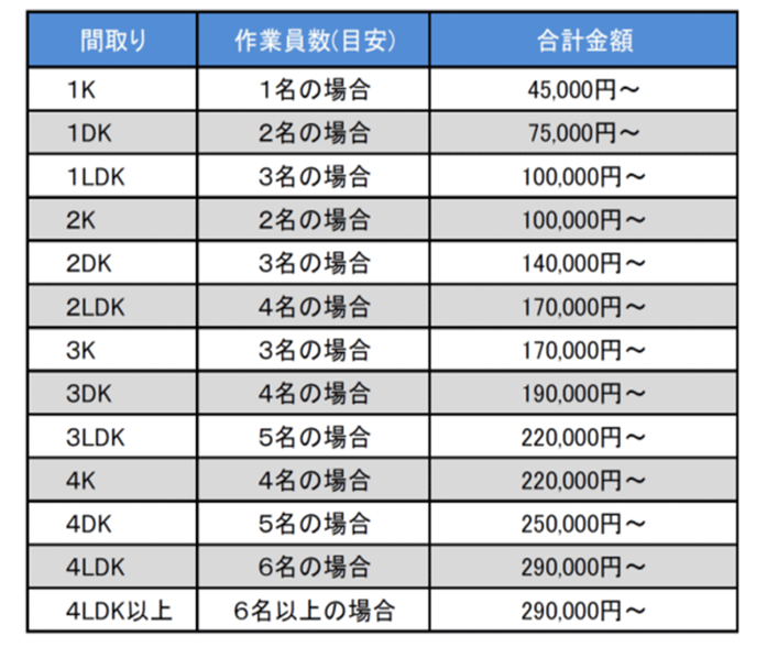 整理料金は「作業人数」「作業量」「処分量」によってお見積もり金額を算出いたします。